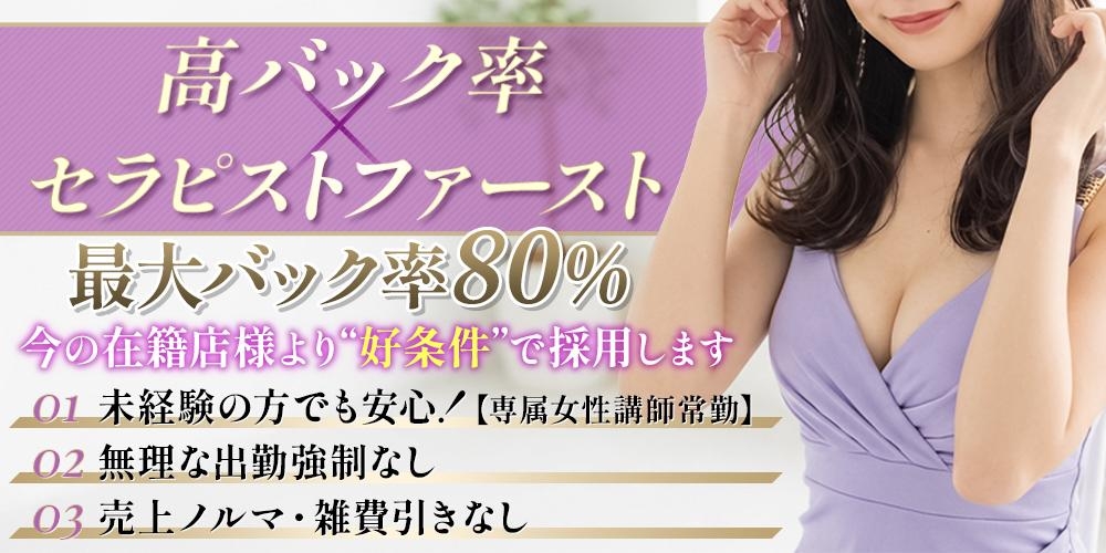| 給与 | ★お給料システムのご案内★ \短時間でもしっかり稼げる!/ 1日数時間でも3万円以上可能! しっかり働けば6万円以上も! 90分コース:9,000円~+指名料 120分コース:10,200円~+指名料 150分コース:13,200円~+指名料 未経験でも報酬が下がることは一切ナシ! ご経験がある方は高バックスタートも可能です♪ |